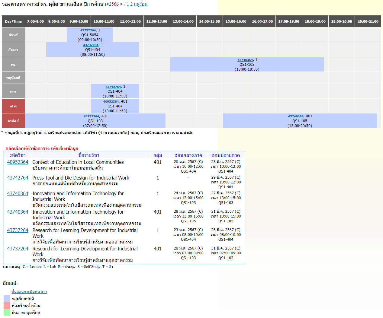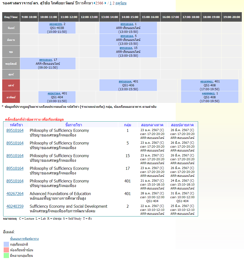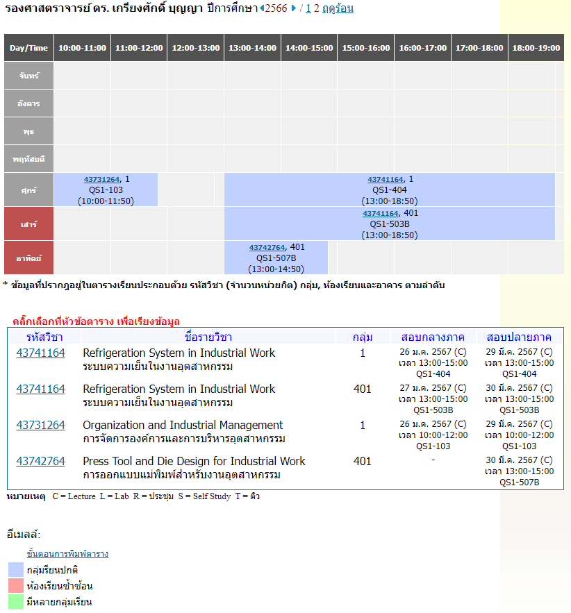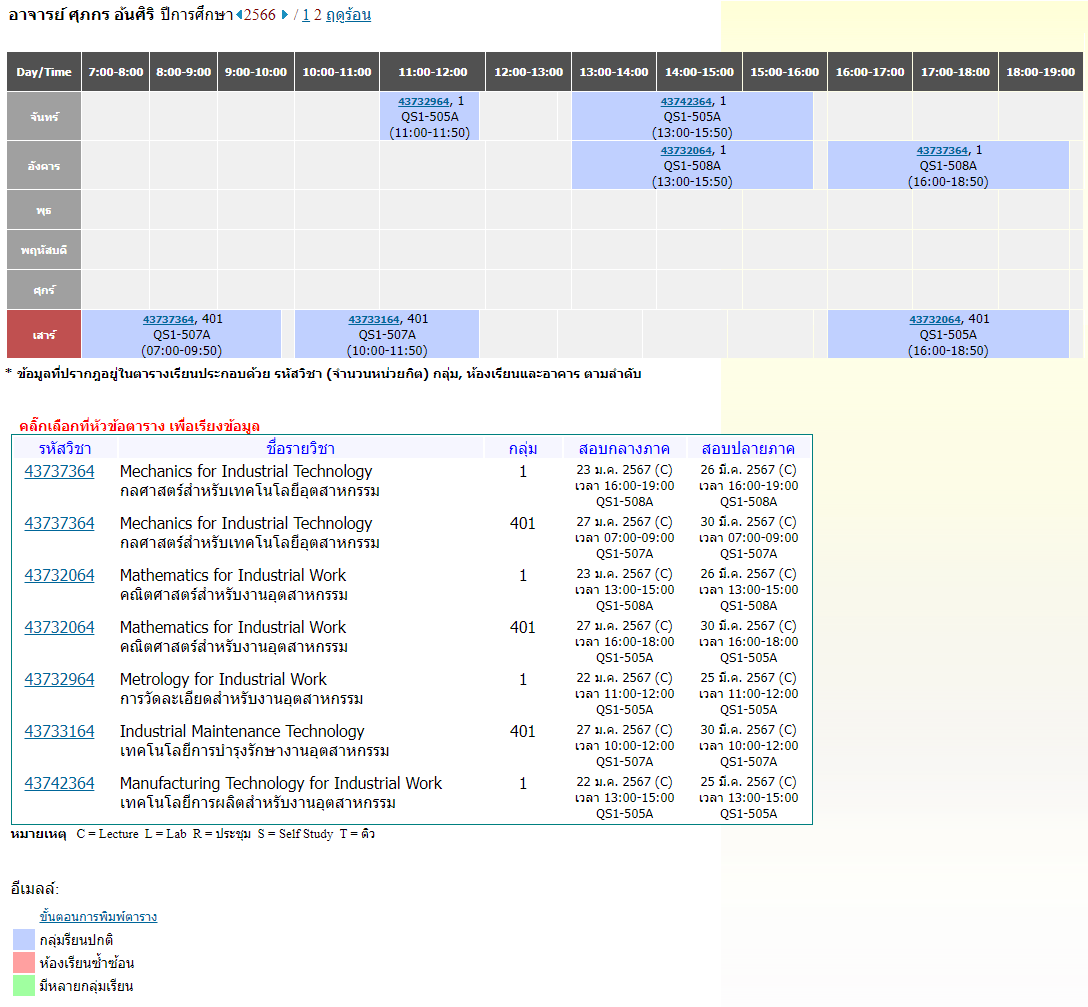 ตารางสอนอาจารย์ 2/2566